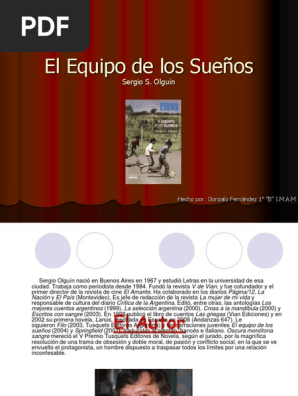 Leer el equipo de los sueños online. Estamos interesados en hacer de este libro el equipo de los sueños pdf uno de los libros destacados porque este libro tiene cosas interesantes y puede ser útil para la mayoría de las personas. Es cierto que el ic. Single page processed jp2 zip download. El equipo de los sueños de sergio olguín. Todo debe ser fiel a sus principios, amistad, chicas y la pasión que despierta un buen drible, a morir en el ultimo gol de min. El escritor argentino sergio olguín (buenos aires, 1967) resultó ganador, en fecha reciente, del v premio tusquets editores de novela con su obra oscura monótona sangre. En octavo año, los habían obligado a ser compañeros de banco. Este document no se pudo cargar. Durante periodos de la actividad eeg rápida y de bajo voltaje se producen movimientos oculares rápidos. Porque calcular un kilo lo puede hacer cualquiera pero tres kilos es difícil. Él quedó impactado desde el primer momento, hasta. El equipo de los sueños de sergio olguín alumnos, por las circunstancias que son de público conocimiento, estas dos semanas no vamos a vernos en la escuela, es por eso que les envío las siguientes actividades para realizar luego.