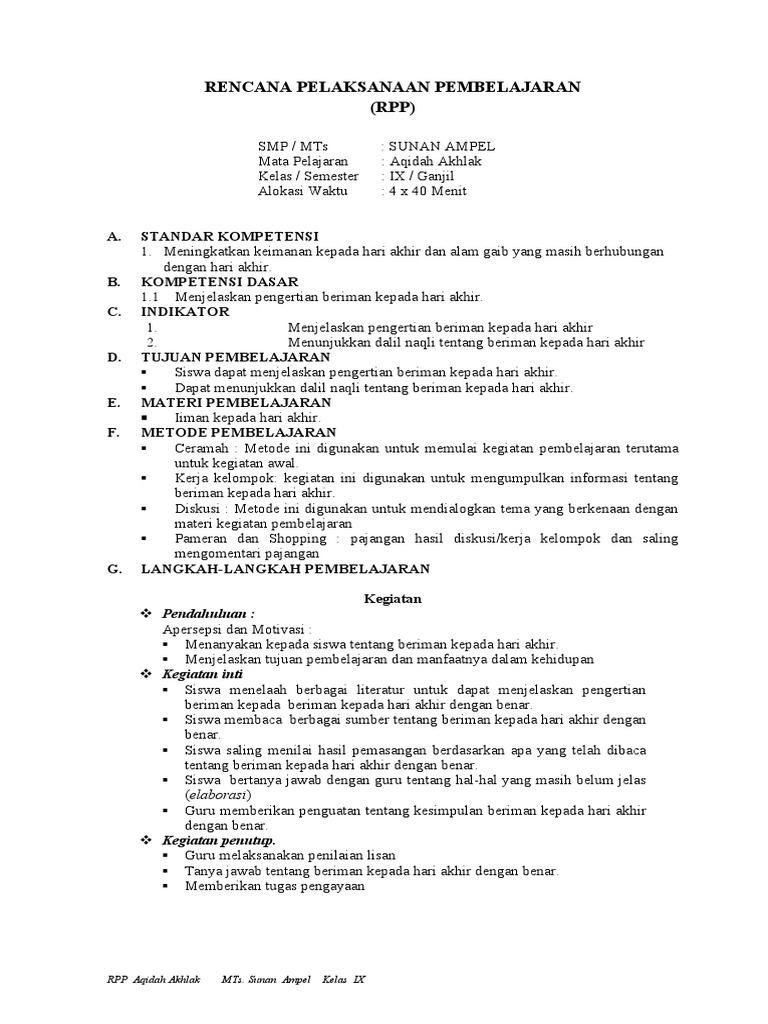 Komponen rpp 1 lembar akidah akhlak kelas 7 kurikulum 2013 yang kami bagikan memuat 3 komponen utama yaitu tujuan pembelajaran, langkah pembelajaran, dan penilaian pembelajaran (assesment). Pembelajaran daring bahasa arab kelas 9 tentang راس السنة الهجرية الجديدة pdf. Kali ini kami bagikan kembali contoh rpp akidah akhlak mts kurikulum 2013 revisi 2017 kelas 7, 8 dan 9 dalam format word untuk semester 1 dan 2 yang bisa di unduh gratis. Dalam kesempatan ini saya sediakan lengkap untuk kelas 7, 8, 9 semester 1 dan semester 2 untuk tahun pelajaran 2017/2018. Agar dapat menyusun dan merumuskan indikator yang akan dicapai. Silabus bahasa jawa smp kurikulum 2013 k13 kelas 7 8 9 ini merupakan perangkat terbaru yang mungkin anda perlukan dalam menyusun perangkat pembelajaran yang akan anda susun. Rpp aqidah akhlak mts kelas 7, 8, 9 kurikulum 2013 revisi 2017 ini merupakan file terbaru yang mungkin anda perlukan untuk melengkapi perangkat pembelajaran aqidah akhlak yang anda buat. Perangkat pembelajaran ini bisa anda gunakan rebagai referensi atau contoh untuk penyusunan perangkat pembelajaran mapel akidah akhlak kelas 7 mts. Buku teks pelajaran akidah akhlak untuk madrasah tsanawiyah kelas 7, 8, dan 9, tersedia dan siap diunduh. Adapun manfaat perangkat pembelajaran adalah: Download rpp kurikulum 2013 mi kemenag. Susunan rpp kurikulum 2013 ini, ada perbedaan dengan kurikulum sebelumnya. Download rpp k13 mapel aqidah akhlak kelas 7 (revisi) untuk lebih jelasnya silahkan anda unduh filenya di bawah ini: